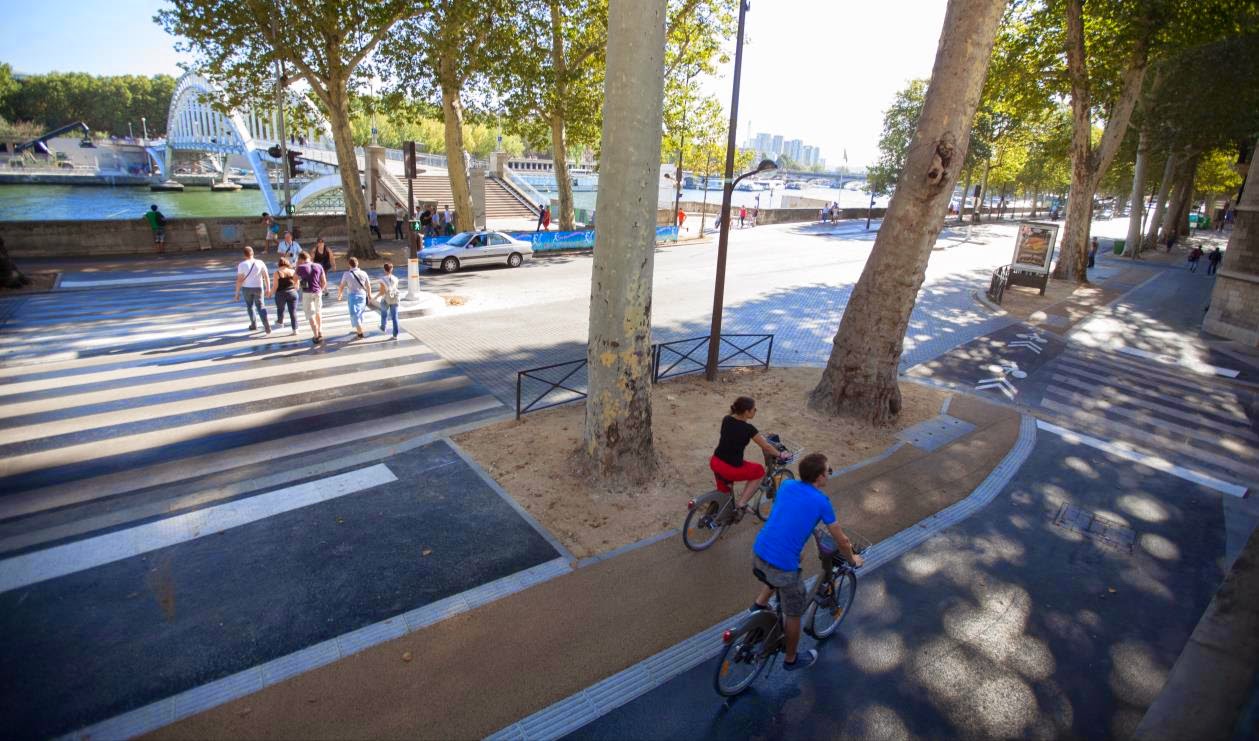 Люди, які їздять на велосипедах в Парижі також мають переваги від тривалого плану зі скорочення загальноміських лімітів швидкості до 30 кілометрів на годину, і 50 км/г тільки для магістральних доріг. Також Париж профінансує облаштування 10 000 нових паркувальних місць для велосипедів.